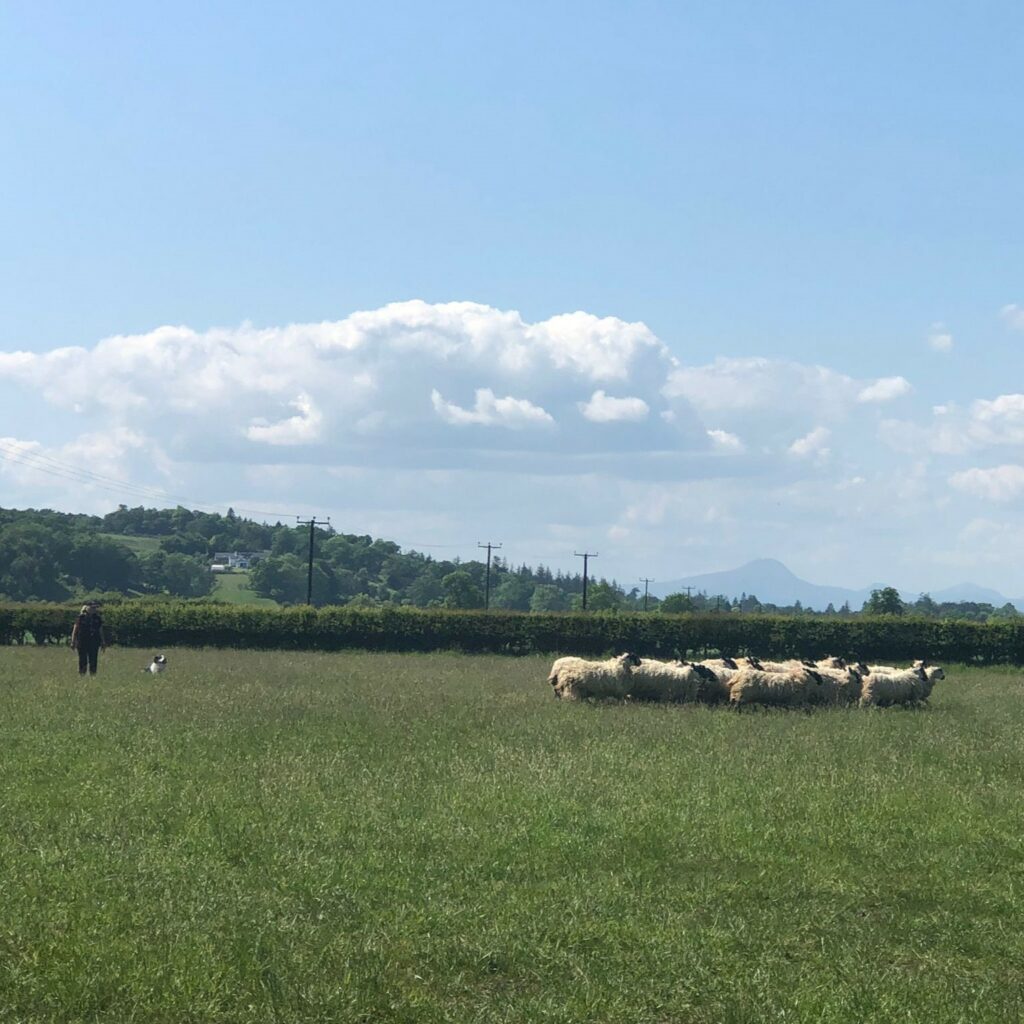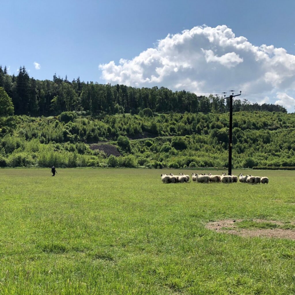 Stock testing the Trossachs Search & Rescue dogs to ensure all our dogs are safe around livestock should those search conditions arise.